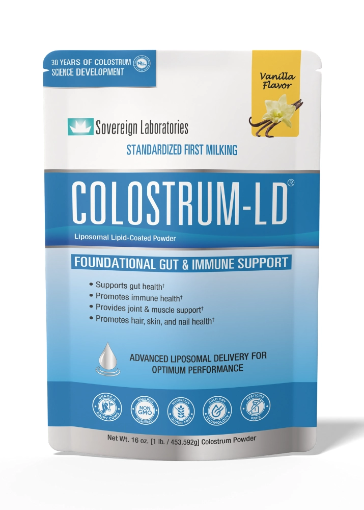 Colostrum-LD® begins its journey as an ethically sourced raw, fresh colostrum from North American Grade A dairy cows that are not supplemented with synthetic growth hormone (rBST) and not routinely given antibiotics. It is processed in a USDA-licensed facility according to gold standard methods which include flash pasteurization and low heat drying. Proprietary Liposomal Delivery™ (LD) restores the natural liposomal coating and maximizes the bioavailability of colostrum’s components so they can be readily distributed throughout the body. Sovereign Laboratories boasts nearly three decades of experience in the bovine colostrum supplement industry.